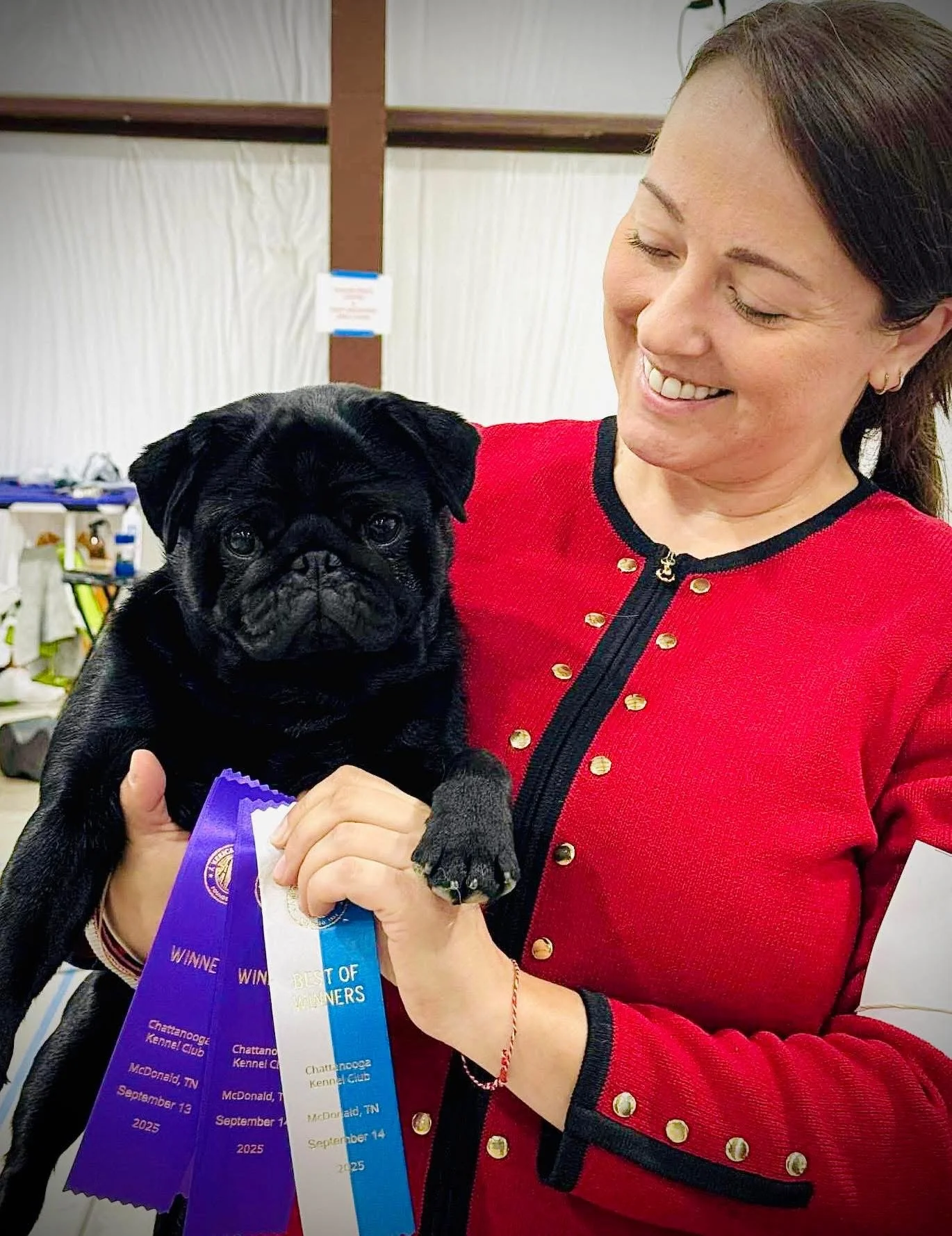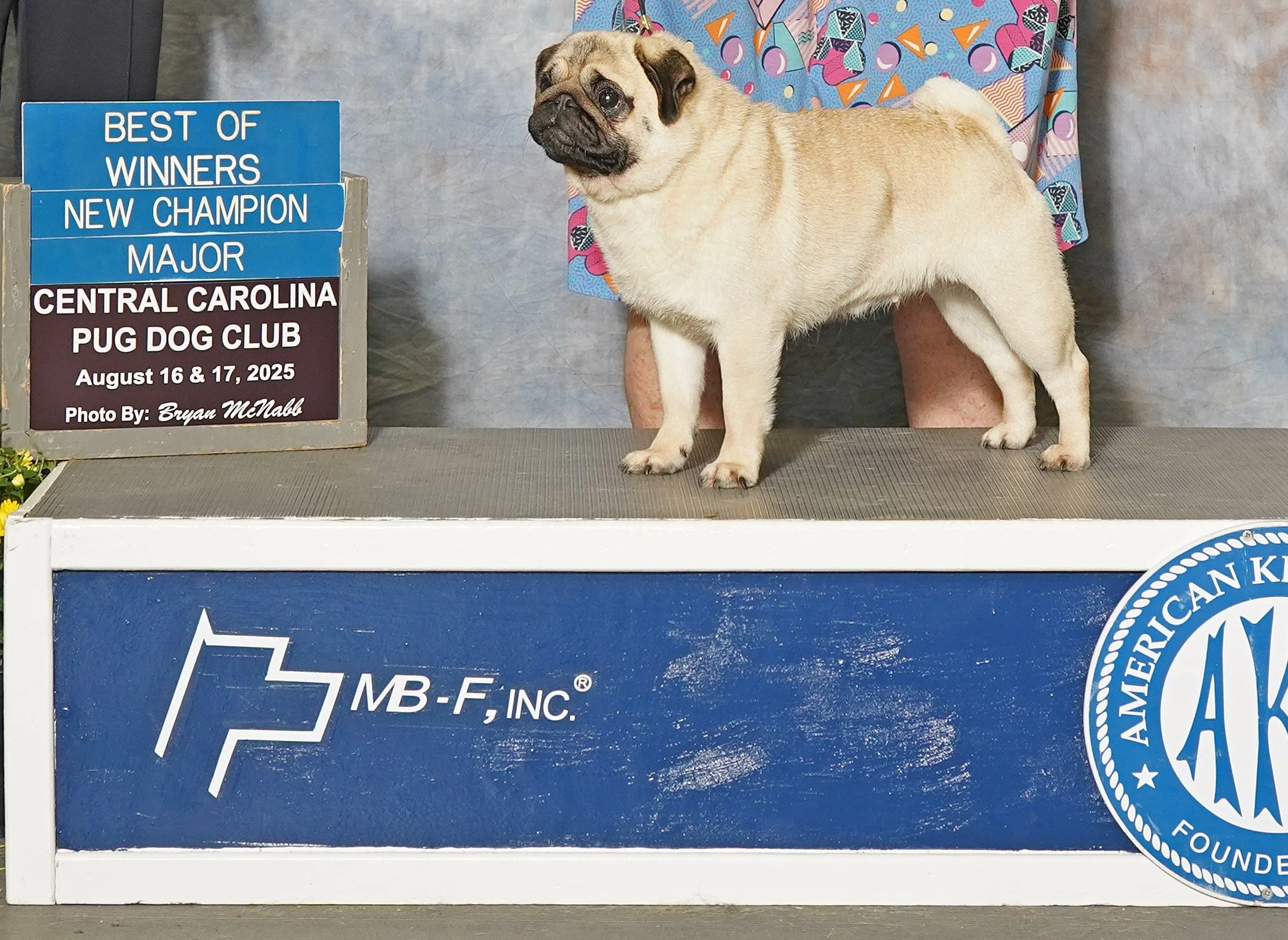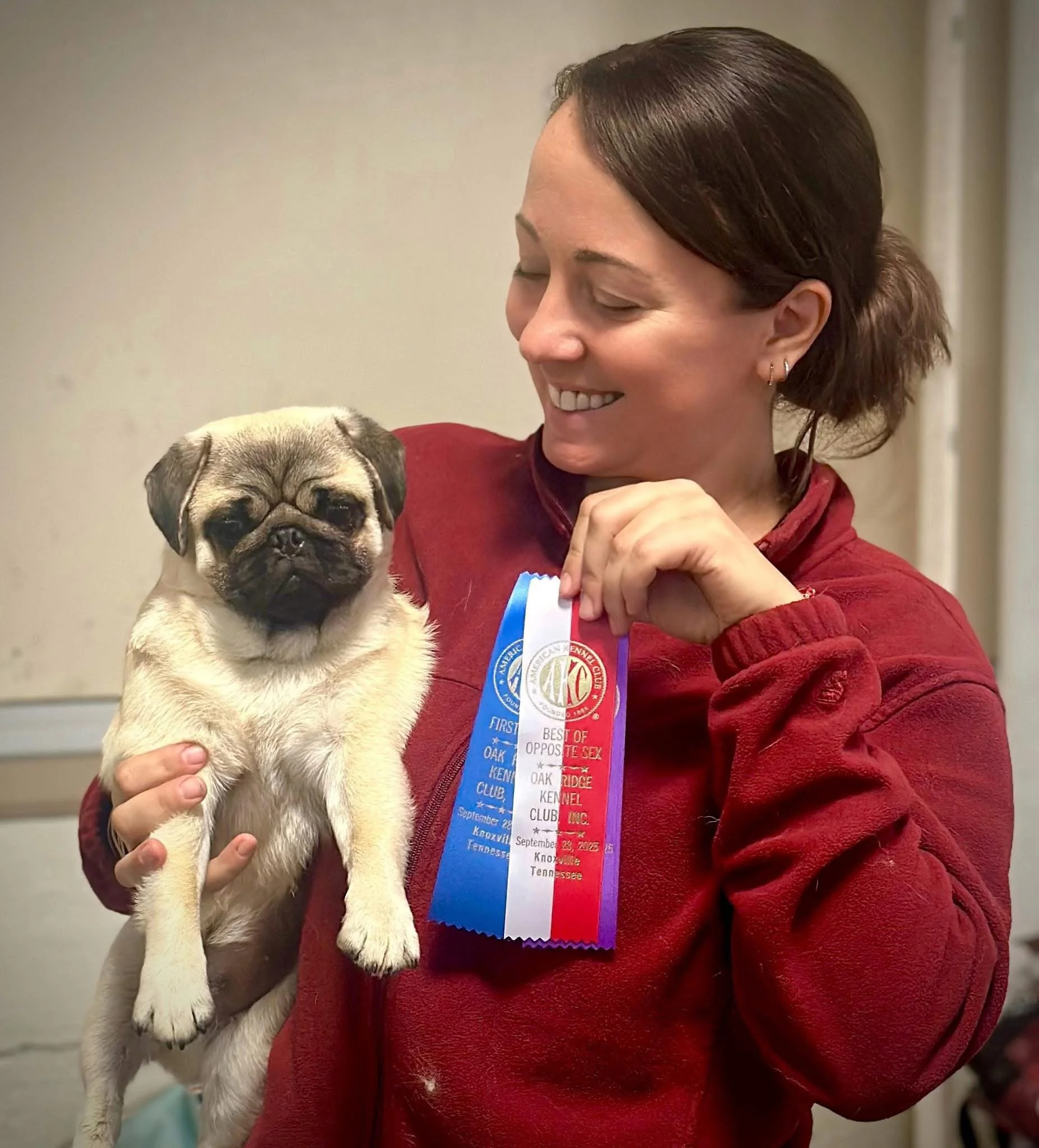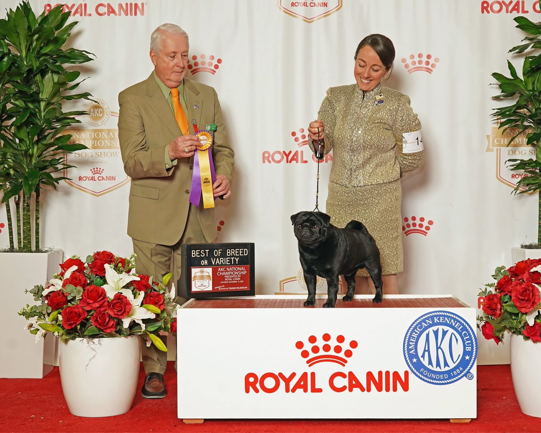 CC Finished with a 5 point Major at the Carolina Pug Specialty on 8/16/2025. Owned and loved by Verlene Miller and Laura Brown. Bred by Verlene Miller with Dixie Pugs