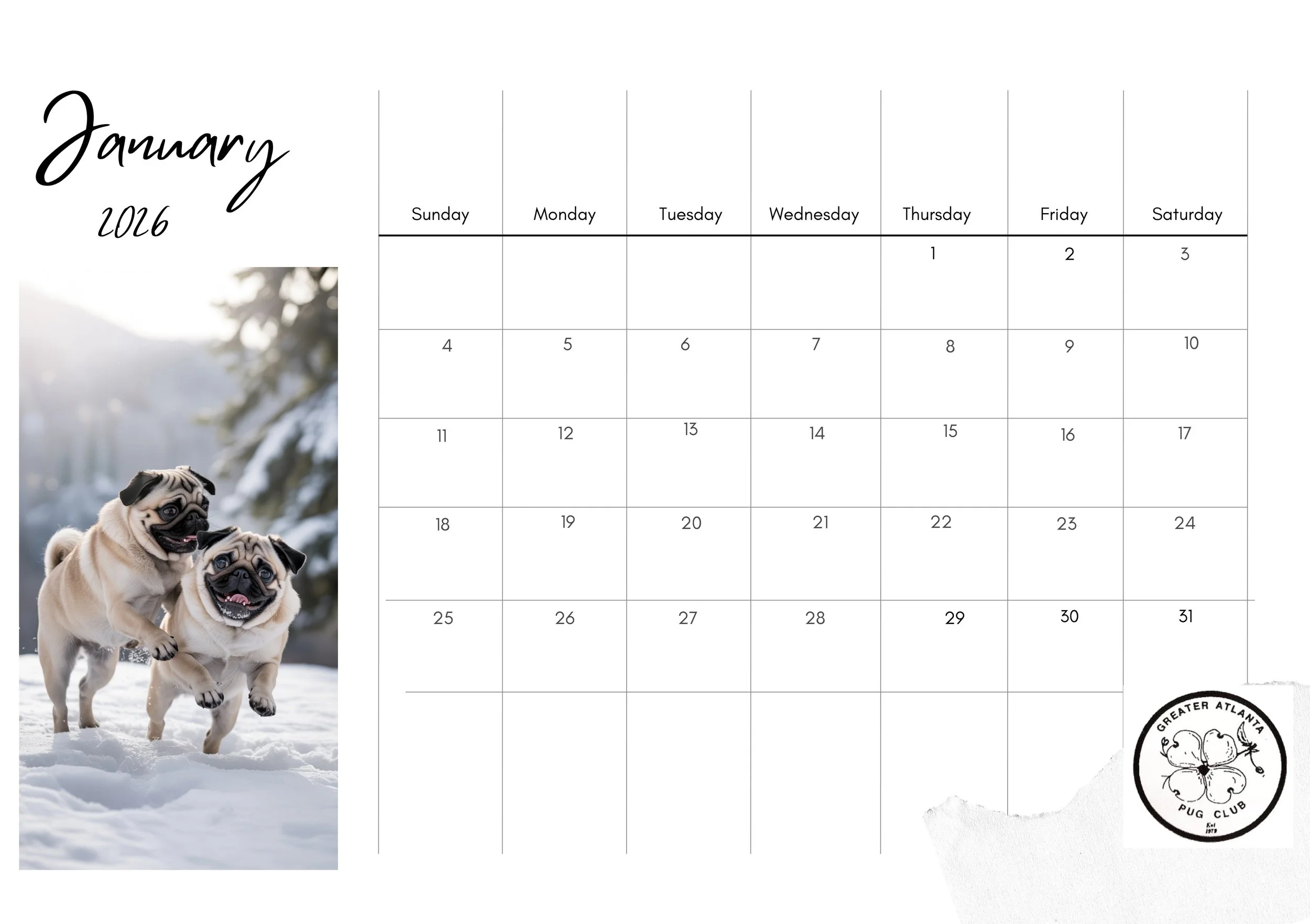 Calander of Pug Specialties